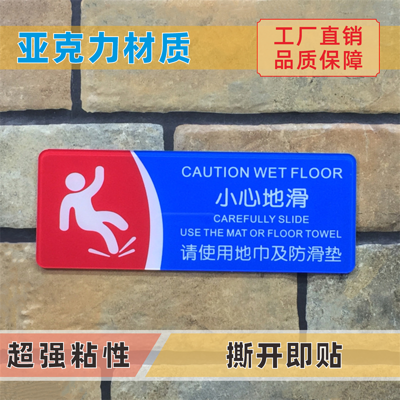 亚克力标识牌小心地滑请使用地巾防滑垫直饮净化水请勿在床上吸烟