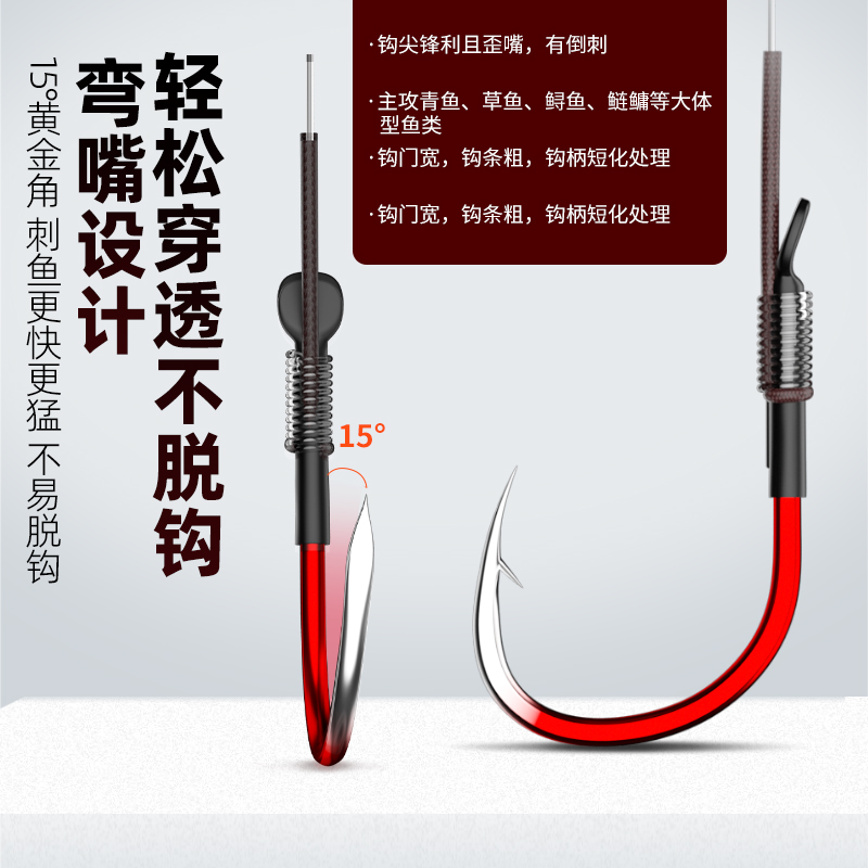 大物子线钩成品子线双钩加长草鱼绑好加固巨物鱼钩歪嘴钩伊势尼
