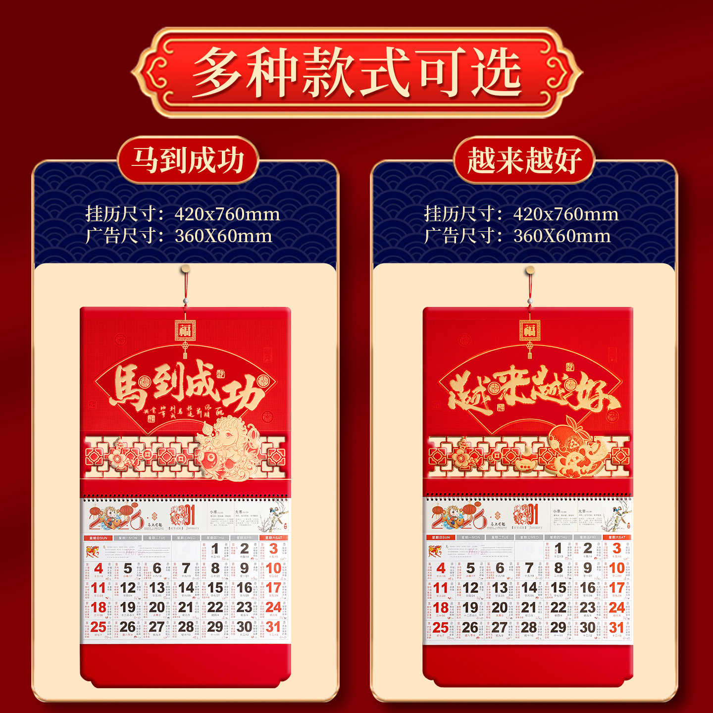 挂历2026年新款日历马年诸事皆顺创意中国风福牌福字定制日历企业高档礼品年历公司年历家用挂墙高档广告定做