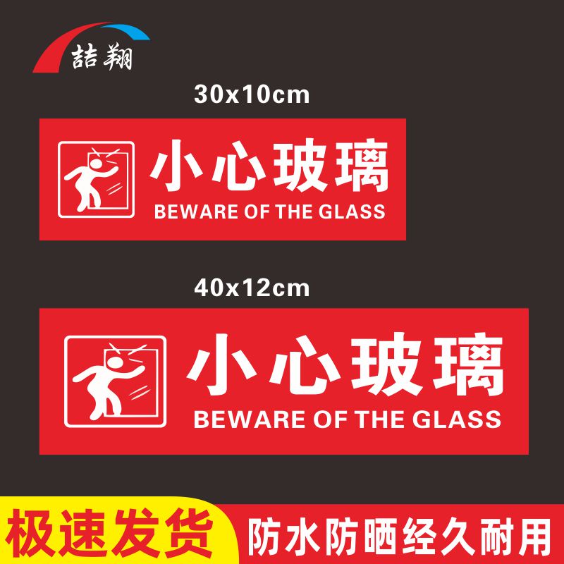 欢迎光临玻璃门贴纸小心玻璃提示贴当心推拉门贴提示牌创意防撞标贴注意碰撞碰头标志贴标识防水