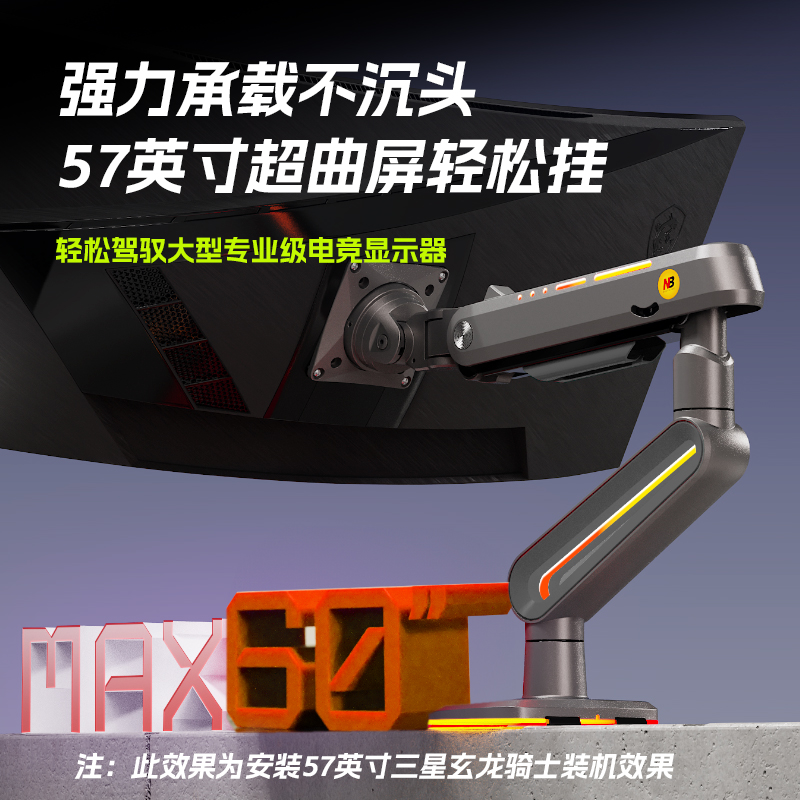 NB电竞游戏显示器支架机械臂升降旋转RGB灯效曲面桌面屏幕增高架
