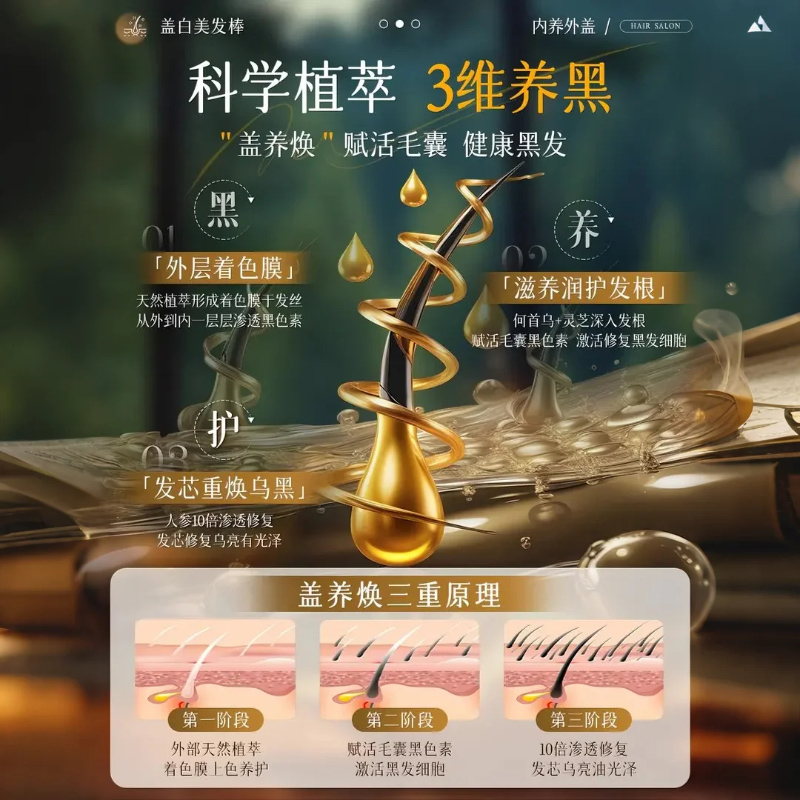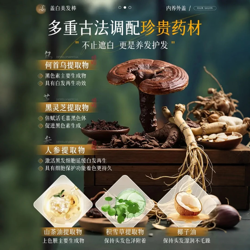 美发棒植物遮盖白发一涂黑一次性染发剂染发笔染发膏快速黑发神器
