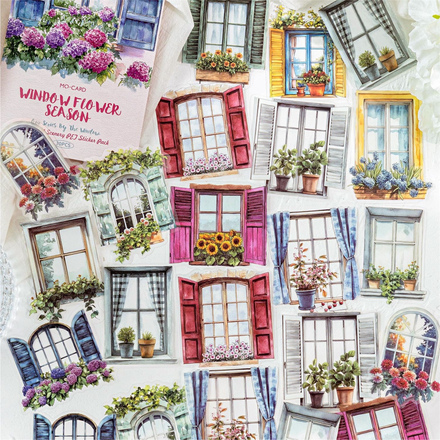 窗边的我们系列PET造景贴纸包30张入手绘水彩风素材手账diy装饰贴