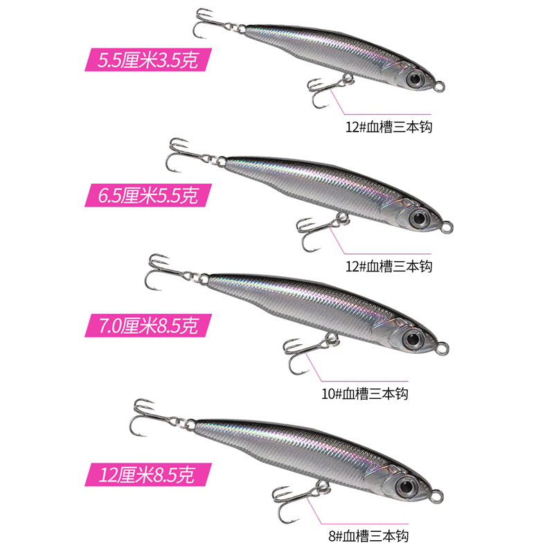 小银鱼颤沉水铅笔路亚饵缓沉微物假饵翘嘴鲈鱼军鱼红尾白条鳜鱼饵