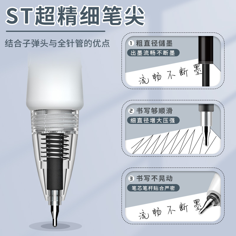 晨光按动笔芯替芯学生用0.5碳素黑刷题中性笔笔芯大容量st头速干笔芯黑笔替芯按压签字笔替换笔芯圆珠笔黑芯