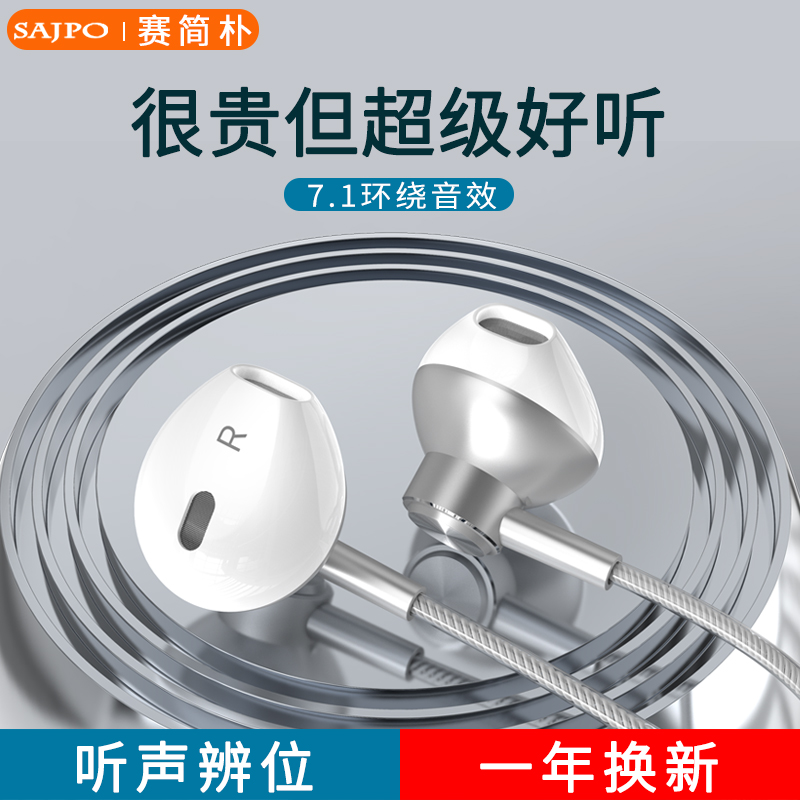 赛简朴有线耳机华为手机通用type-c直播k歌声卡专用3米加长线耳麦