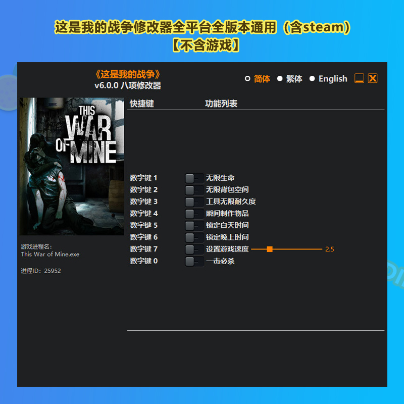 这是我的战争 Steam修改器 正版Win电脑辅助工具科技 不含游戏