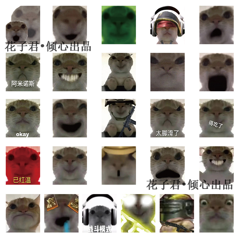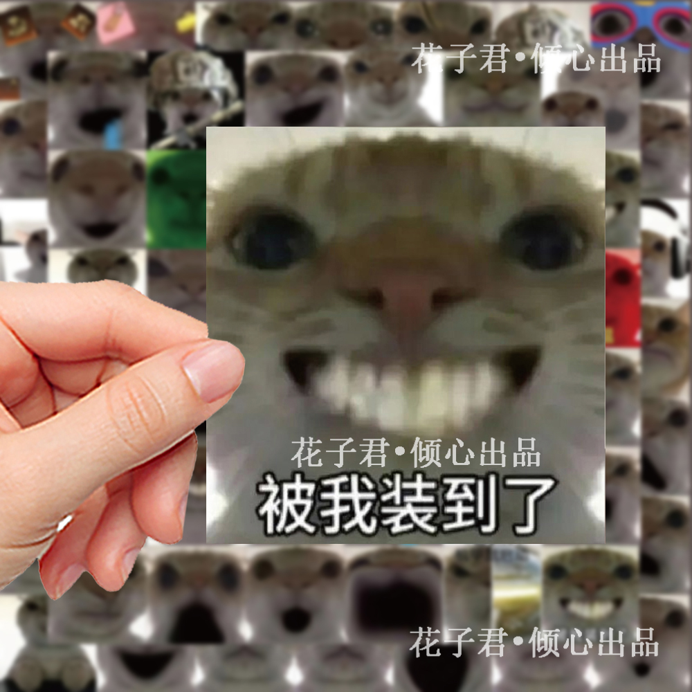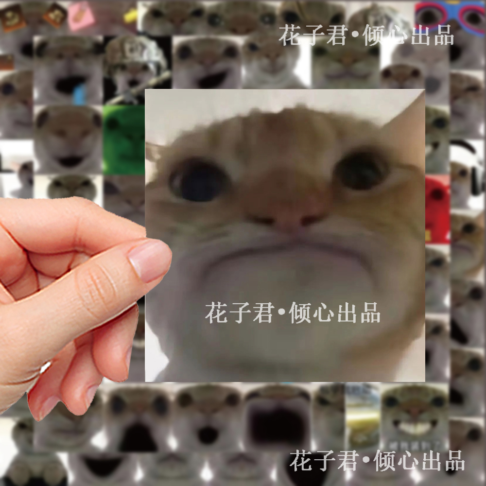 124张无字神经发疯猫猫头贴纸可爱趣味搞怪表情包手账手机壳贴画