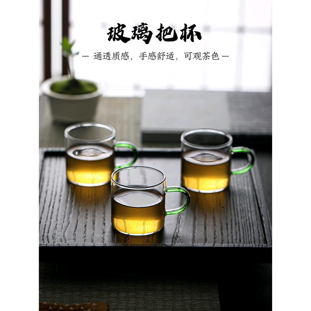 玻璃小茶杯带把杯子品茗杯水杯透明茶碗有耳杯6只装耐热功夫茶具