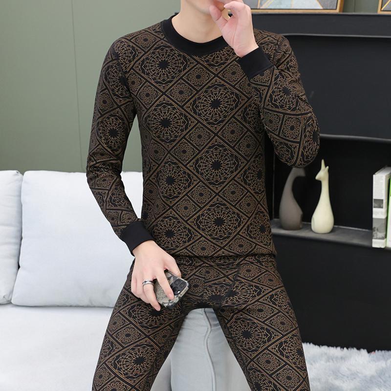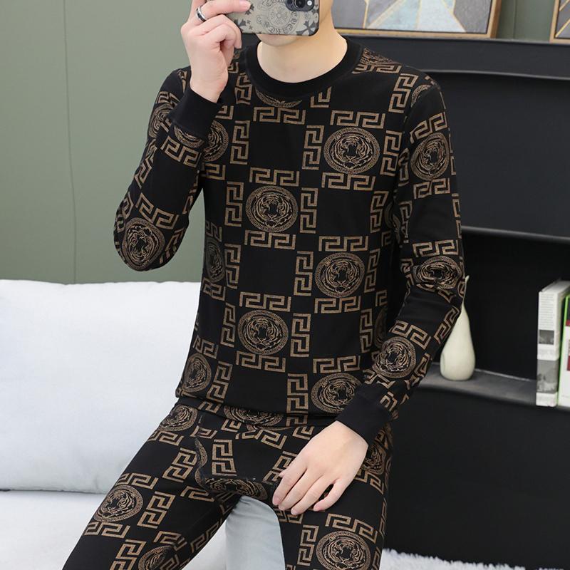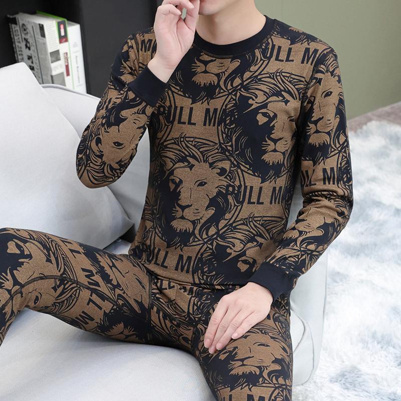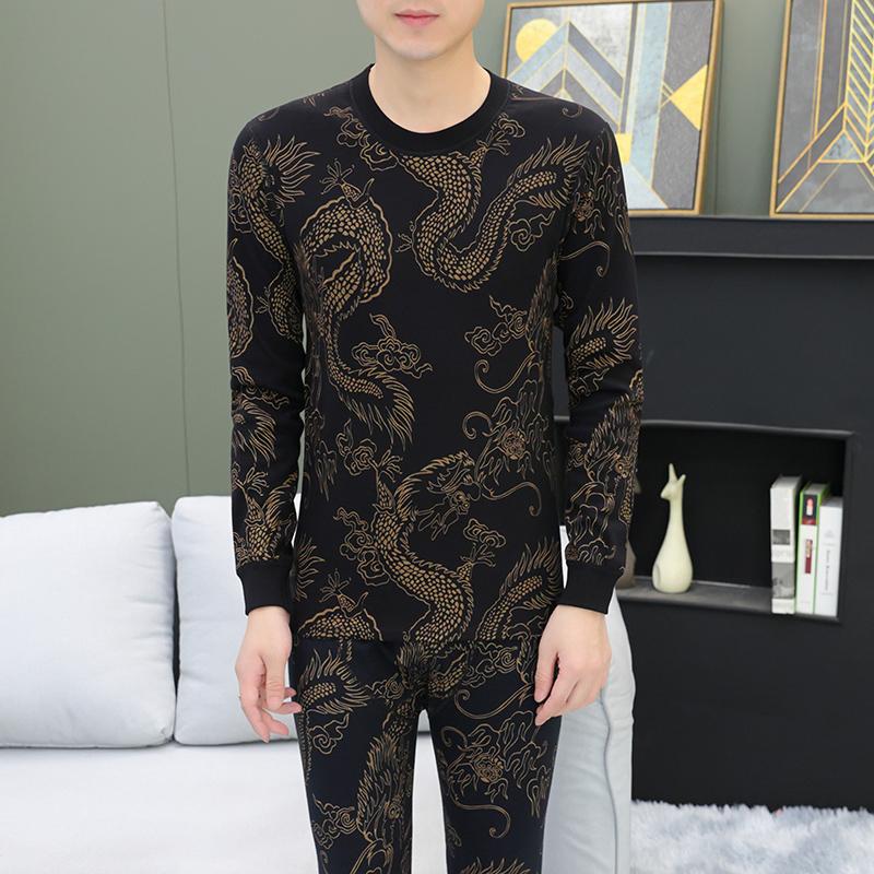 恒源祥纯棉男士秋衣秋裤两件套潮流欧洲站保暖内衣套装全身印花个