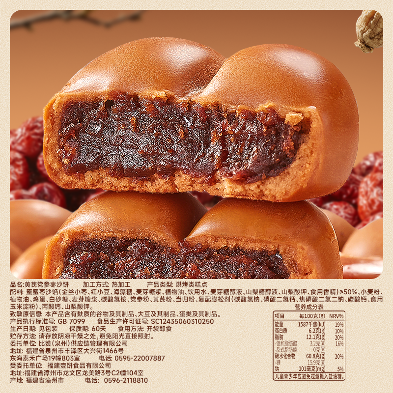 比比赞黄芪党参枣沙饼烧饼小吃老式糕点心美食品零食整箱批发