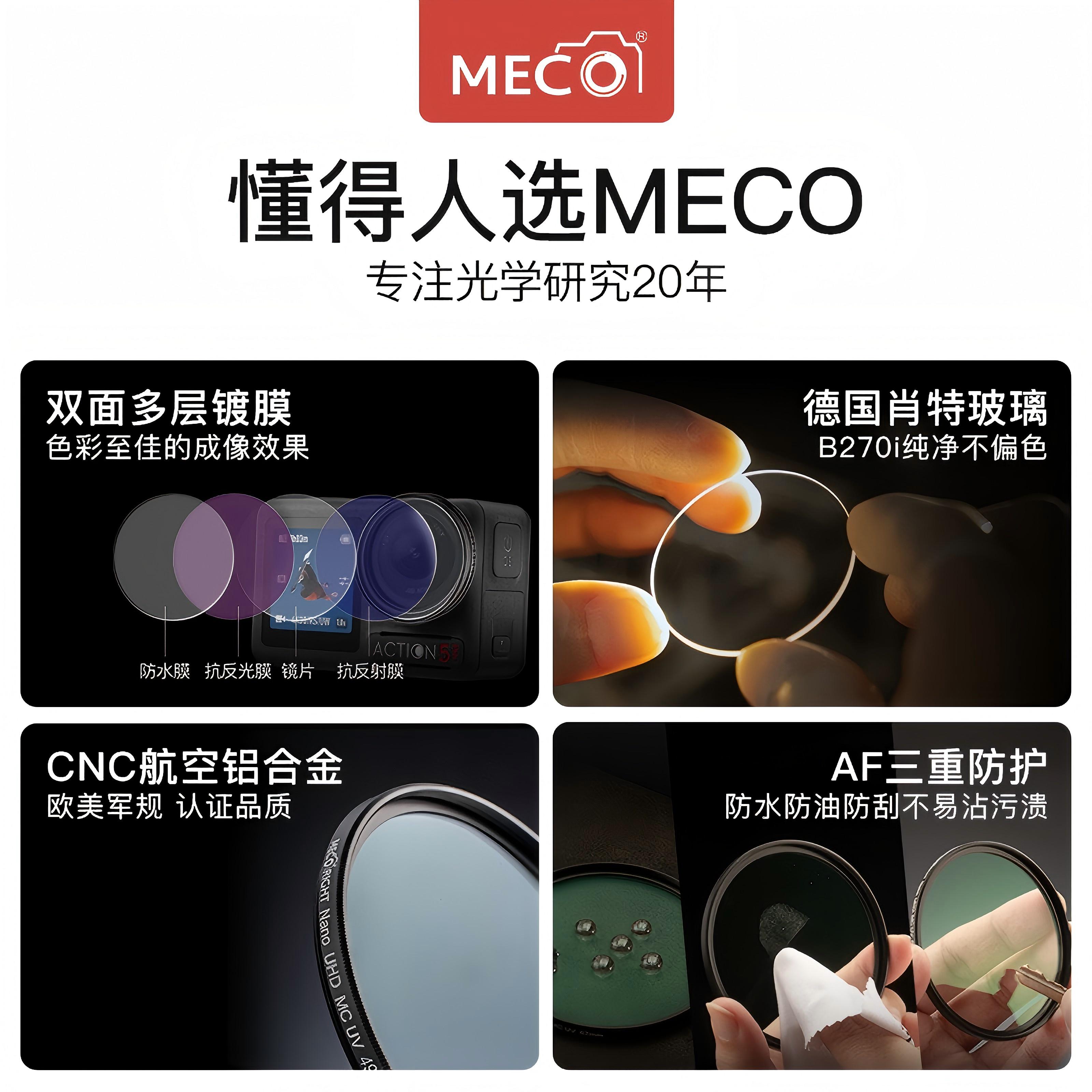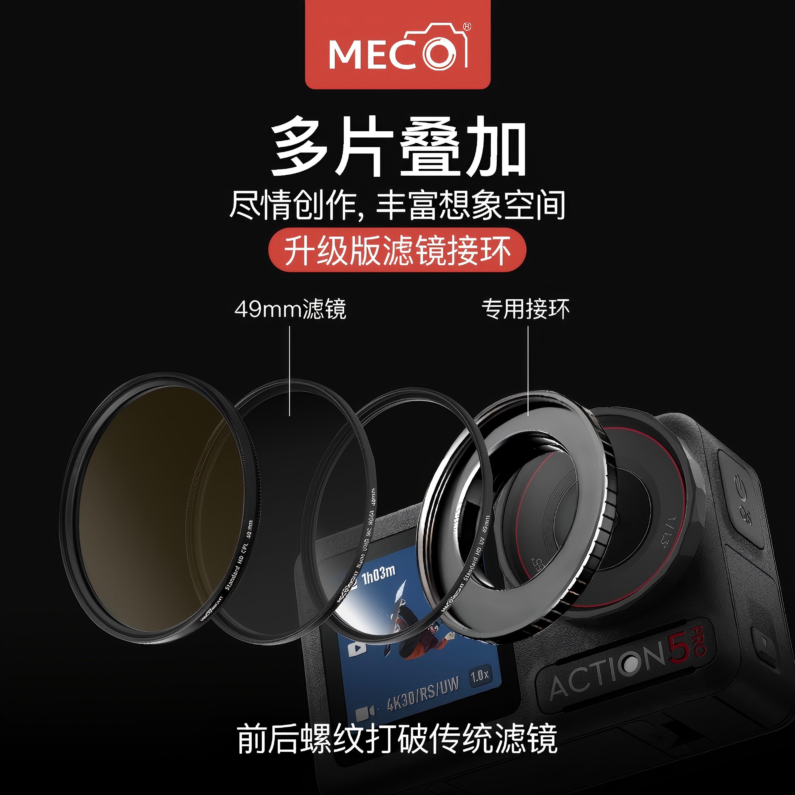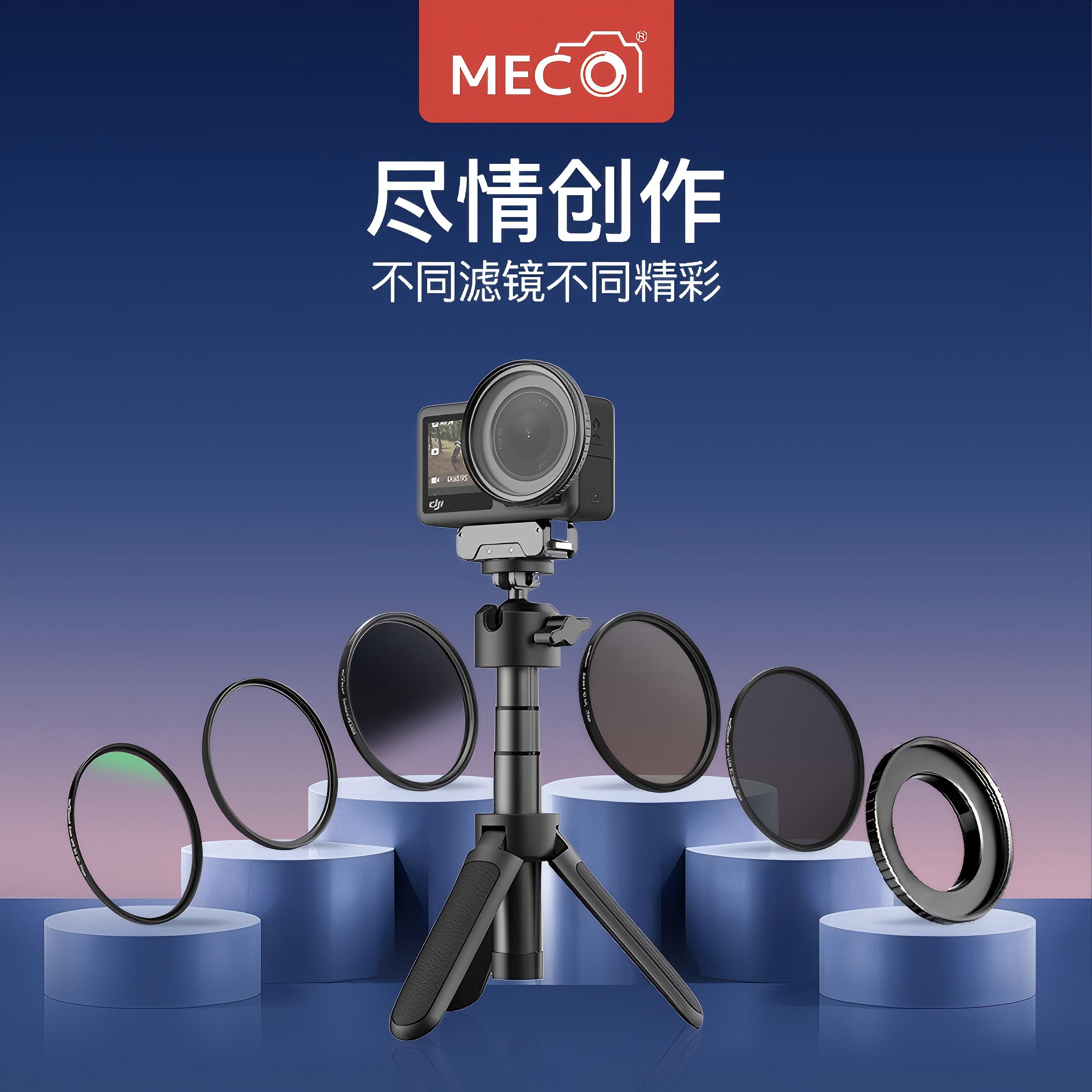 MECO美高适用于DJI大疆Action3/4/5代通用滤镜转接环UV保护镜可调ND减光镜CPL偏振镜黑柔白柔焦星光镜头配件