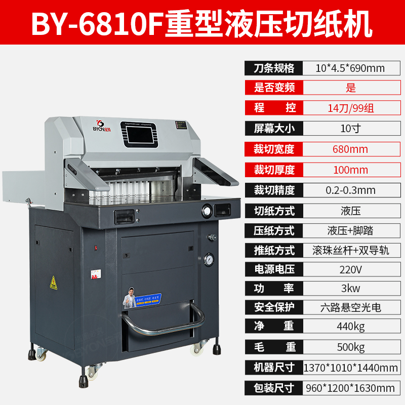 BY-6810F自动液压切纸机全自动程控裁纸刀智能印后设备书本书籍修边相册切割刀标书文件裁切图文装订配套设备