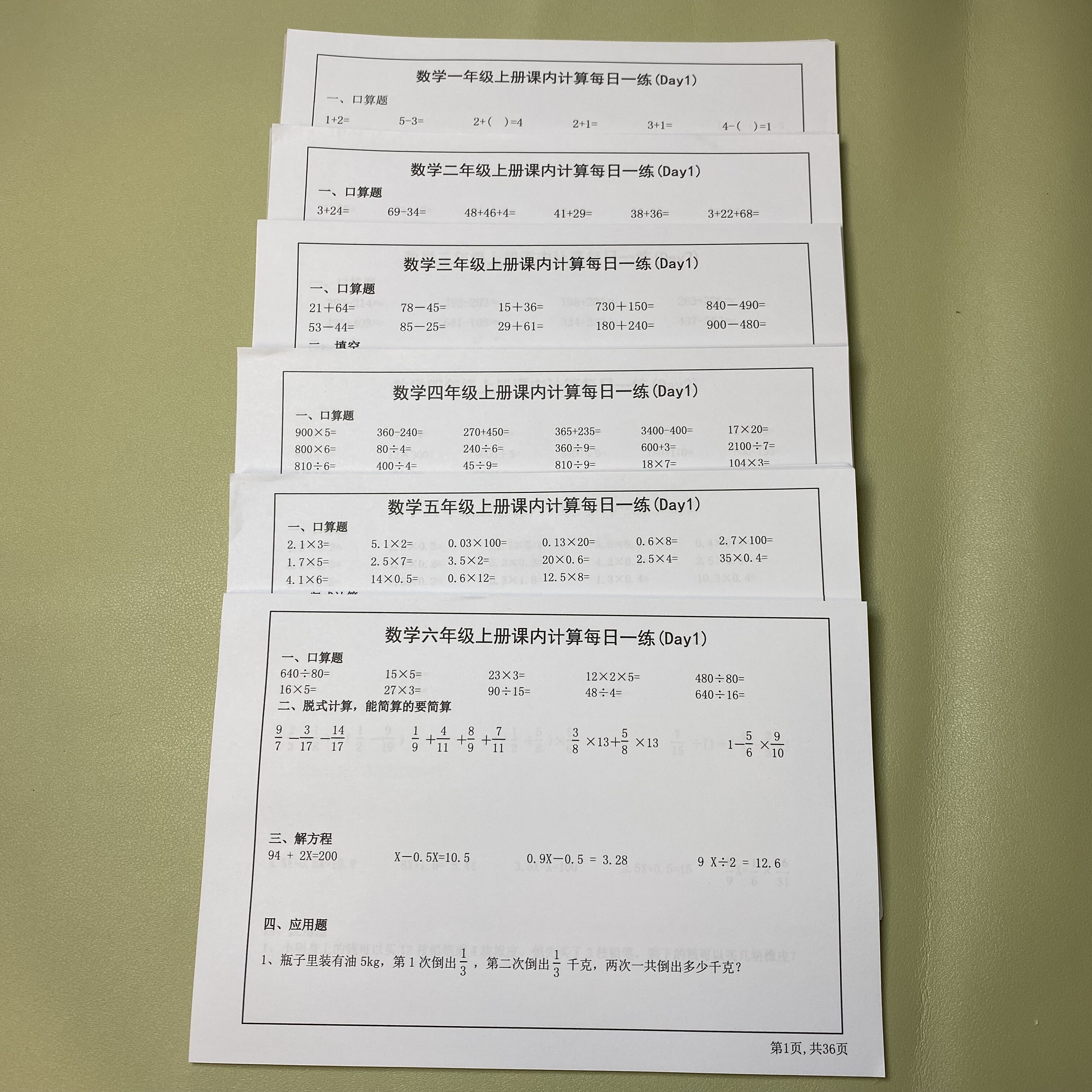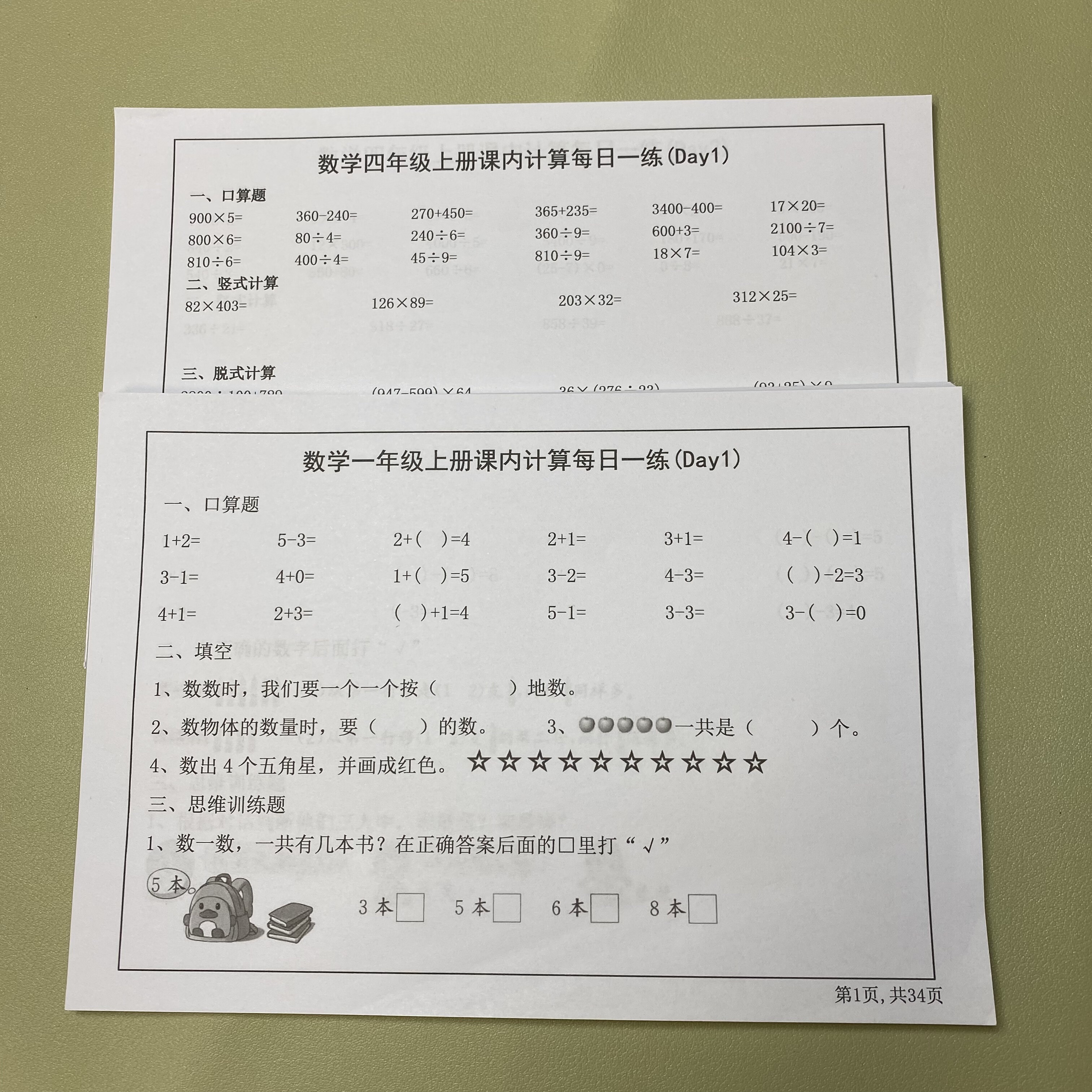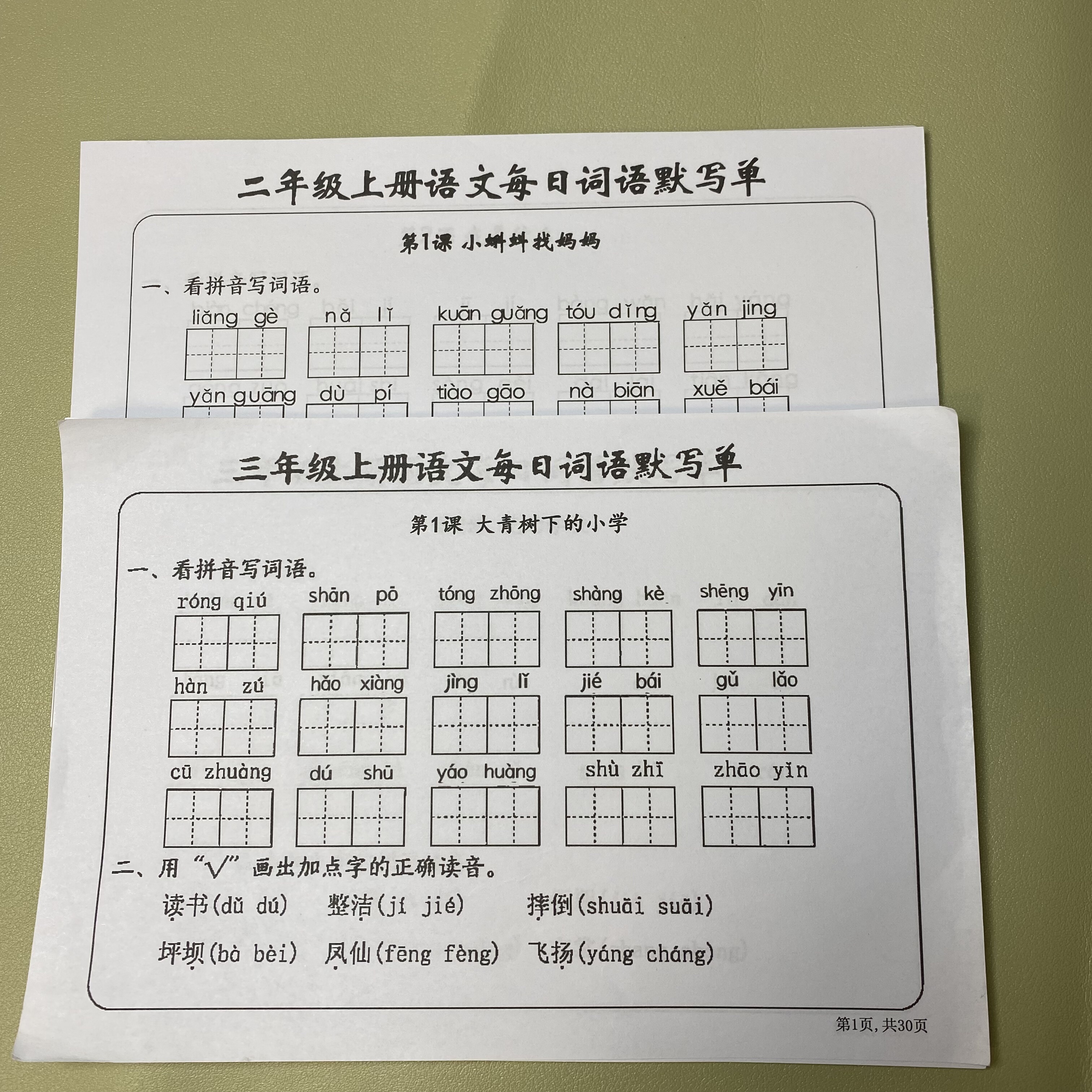 新版三四五六年级上册语文同步每日词语默写单数学每日计算小纸条