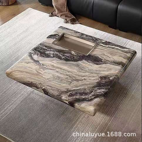 现代简约岩板小户型意式极简方形茶几客厅家用高级落地茶几桌子