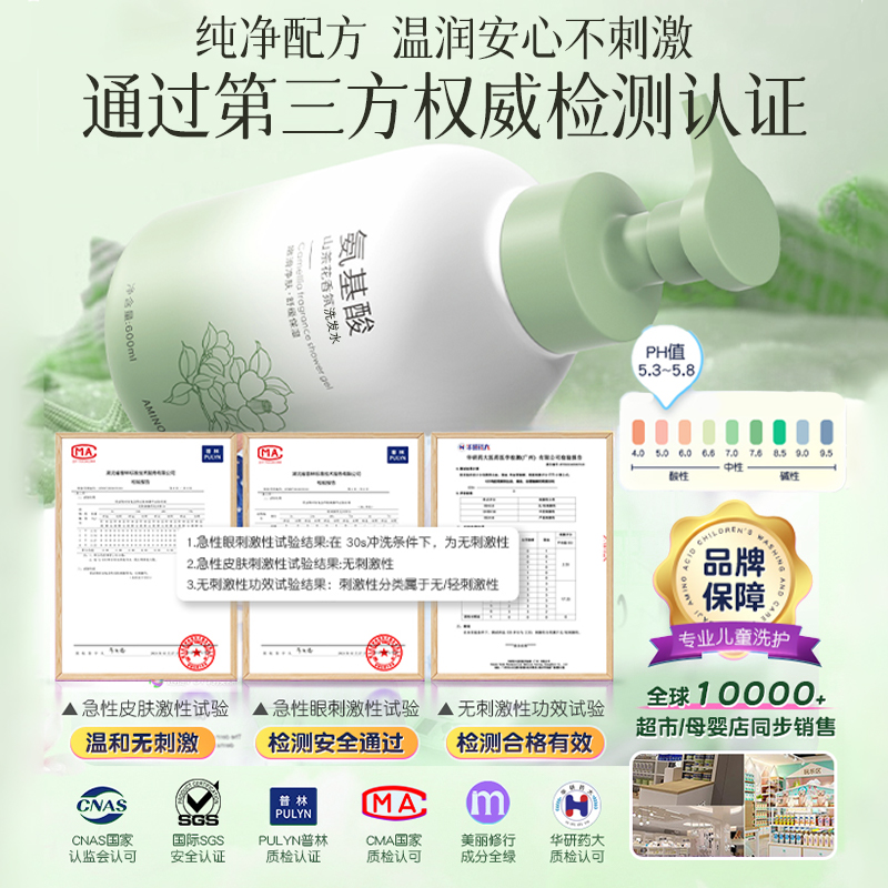 植观积雪草儿童洗发水专用1-12宝宝无泪氨基酸中大童洗头膏男女孩