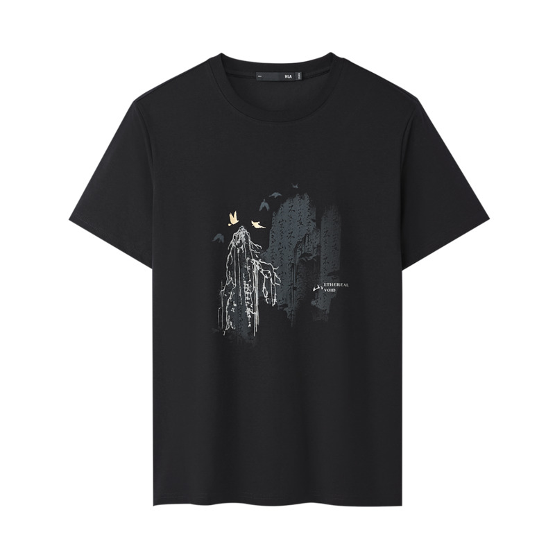 HLA/海澜之家山不在高短袖男25夏季新款凉感速干透气印花T恤男装