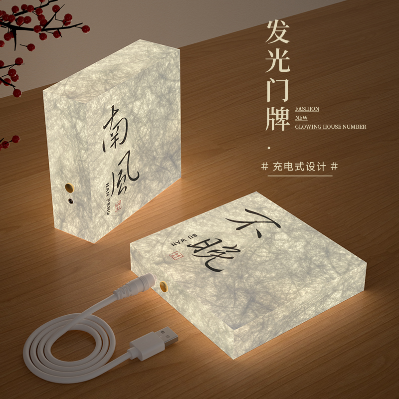 茶室移动充电桌面LOGO灯牌摆件房间名网红书法夜灯标识展示牌中式氛围灯包厢门牌亚克力双面发光奖杯灯箱定制