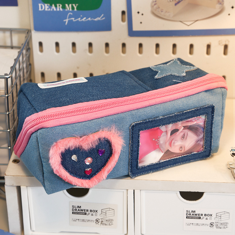 速发牛仔痛笔袋孩生高颜值好看的多工能文具铅笔盒