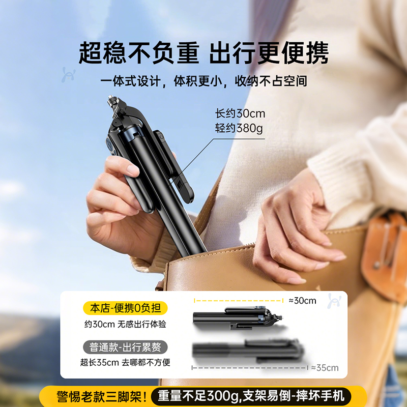 品胜小轻自拍杆迷你旅游便携2025新款通用手机自拍神器360度旋转落地三脚架手持mini蓝牙超轻自拍vlog拍照24