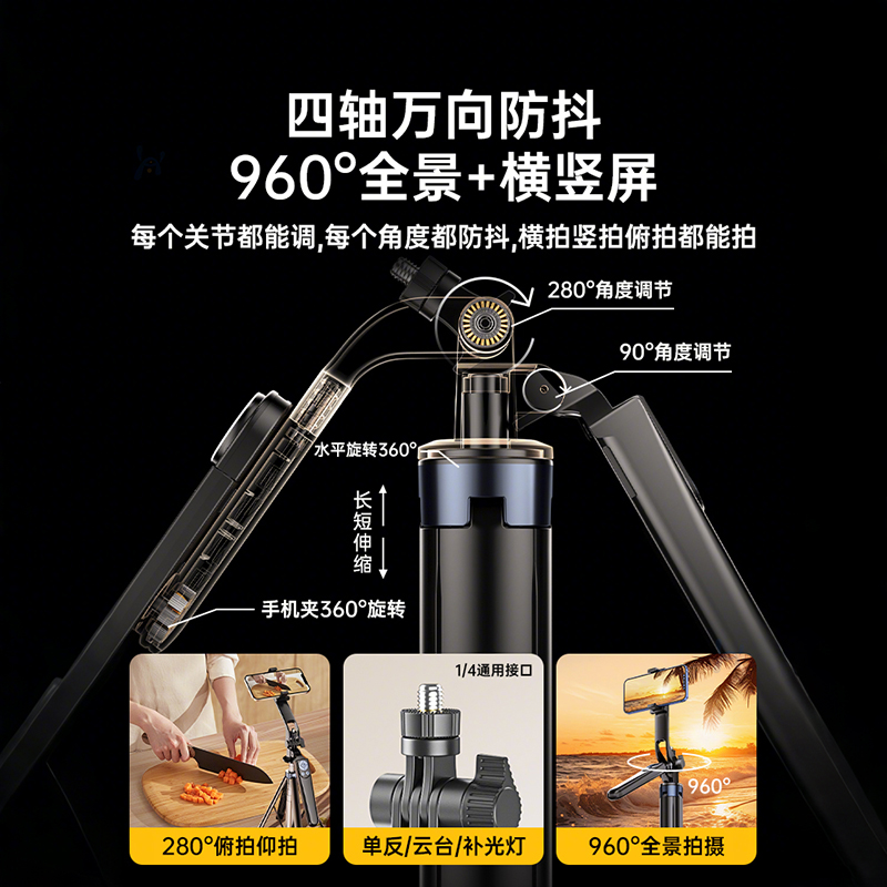 [四轴四脚架】2025新款自拍杆三脚架手机通用自拍神器360度旋转手持防抖旅游便携拍照直播支架多功能一体式24