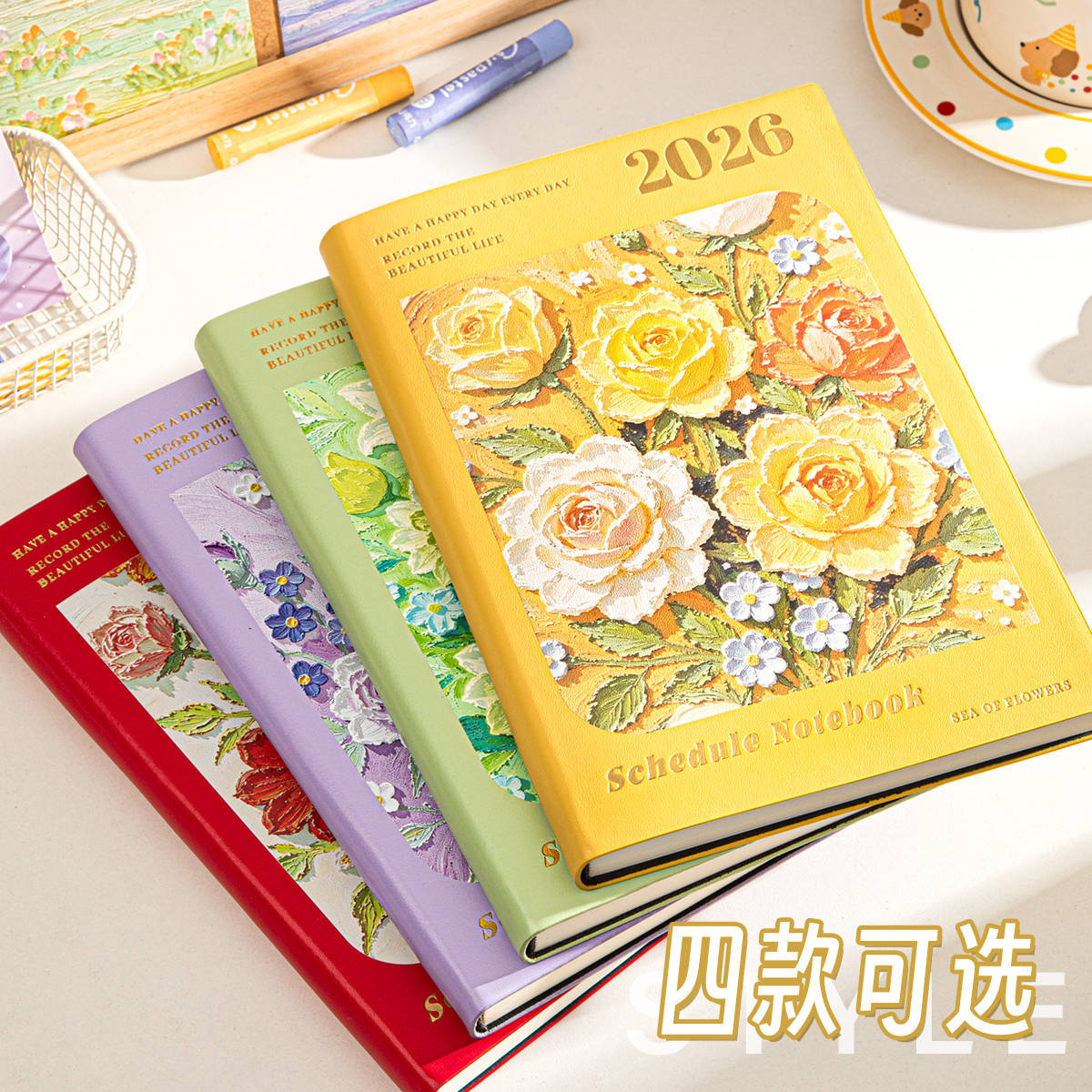 2026年定制油画日程本计划表新款笔记本子工作日志记事日记本日历每一日一页自律打卡365天效率手册时间管理