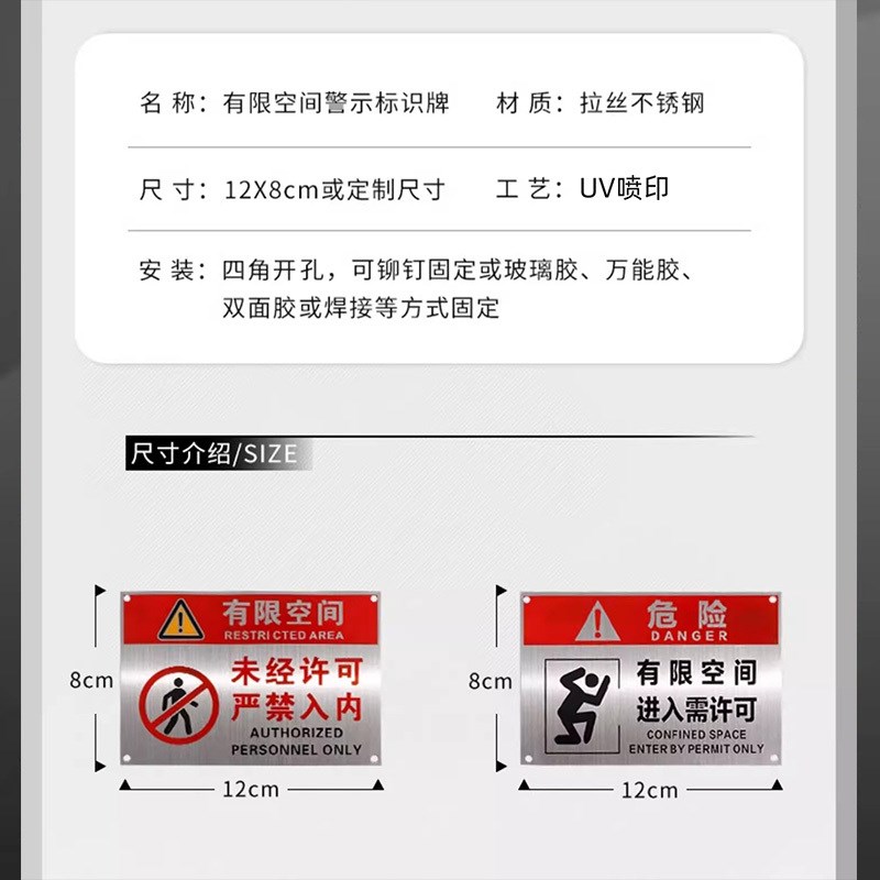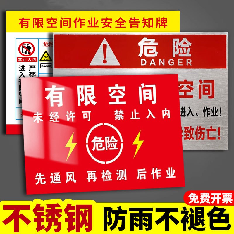 现货速发有限空间警示不锈钢户外铝板反光标识牌受限空间警示牌未