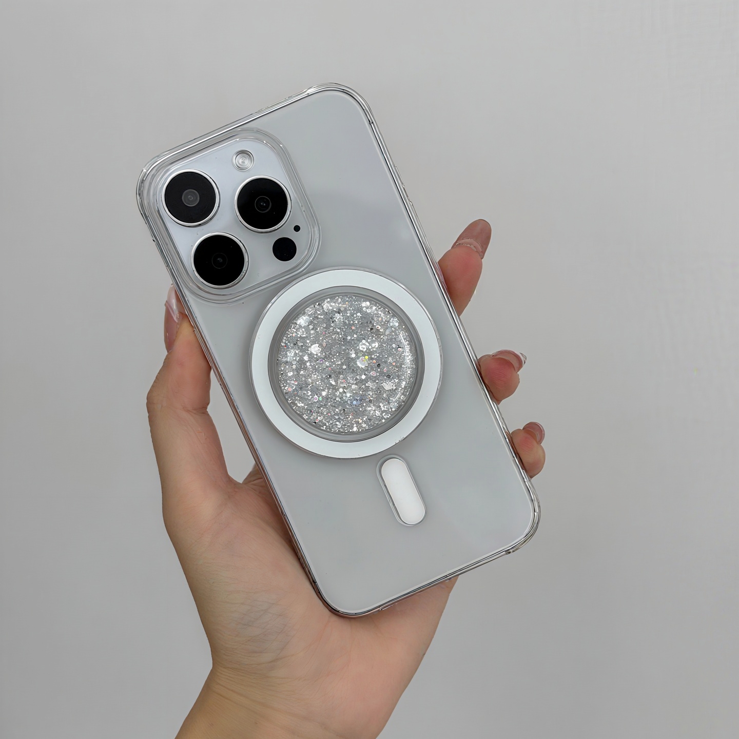 blingbling的 炫彩亮片银紫Magsafe气囊磁吸支架小众适用于iPhone
