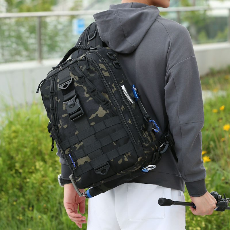 战术双肩包路亚专用工具收纳机能工装骑行地质登山多功能徒步背包