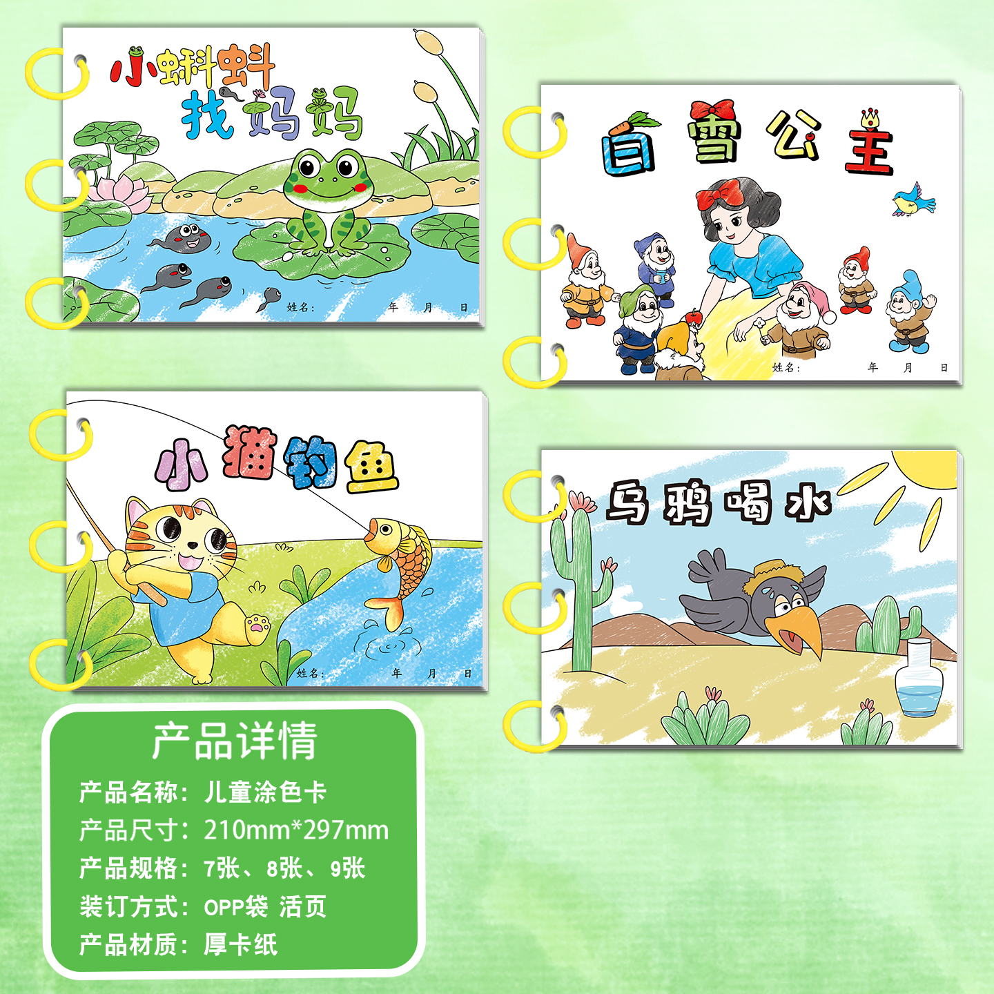 幼儿园自制手工绘画本儿童亲子创意涂鸦填色绘画启蒙故事书涂色卡小蝌蚪找妈妈白雪公主小猫钓鱼乌鸦喝水