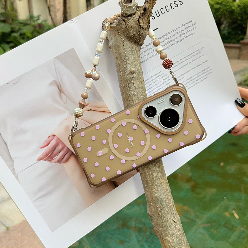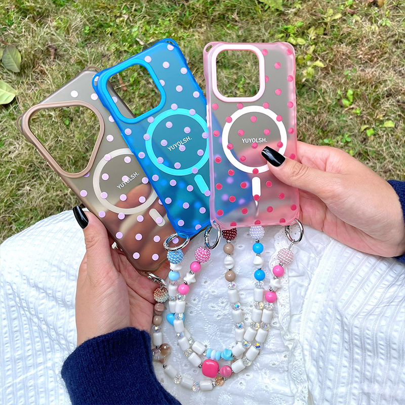 《巴黎假日》波点调色盘磁吸手机壳四角挂链适用16pro透色壳小米15ultra原创设计手提链条华为pura70少女手拎