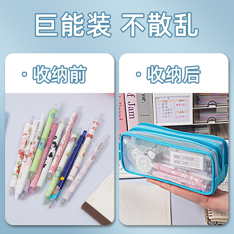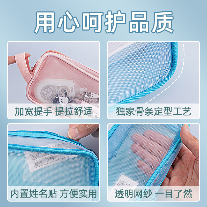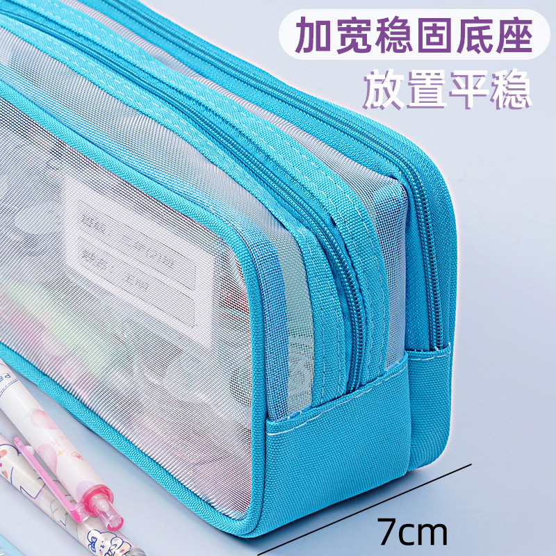 双层透明笔袋小学生大容量文具袋女生铅笔袋男孩款女孩文具盒高颜值收纳铅笔盒儿童简约尼龙网纱考试专用文具