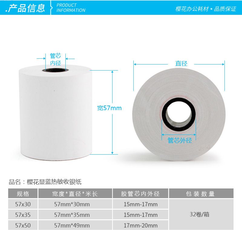 樱花热敏收银纸显蓝字57x30 35 50 58mm小卷管芯热敏感打印纸饿了么美团外卖小票收款专用打票纸