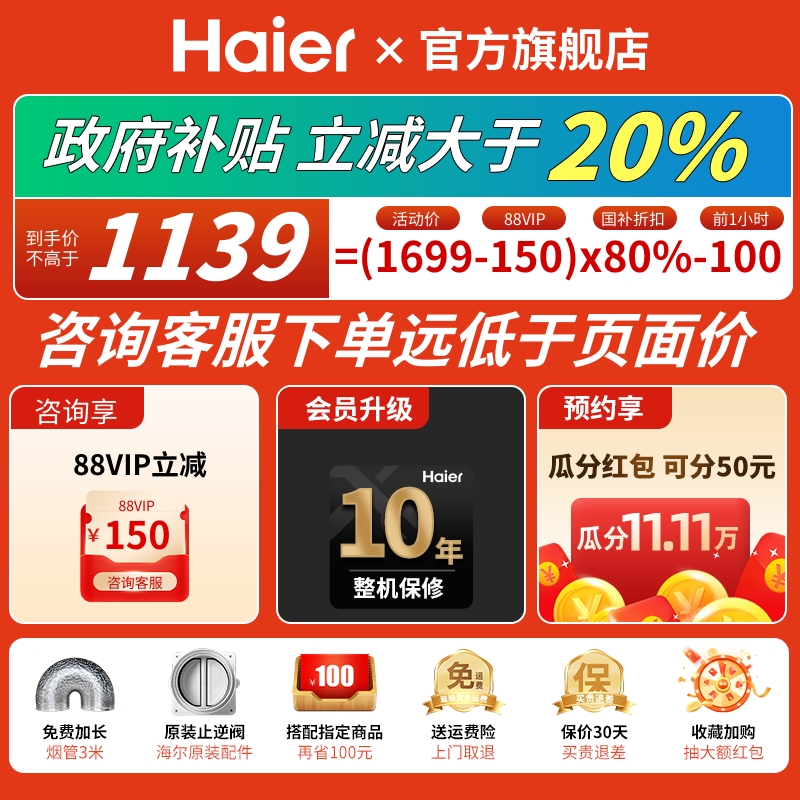 【国补全国】海尔统帅油烟机家用厨房吸抽油烟机大吸力官方旗舰店