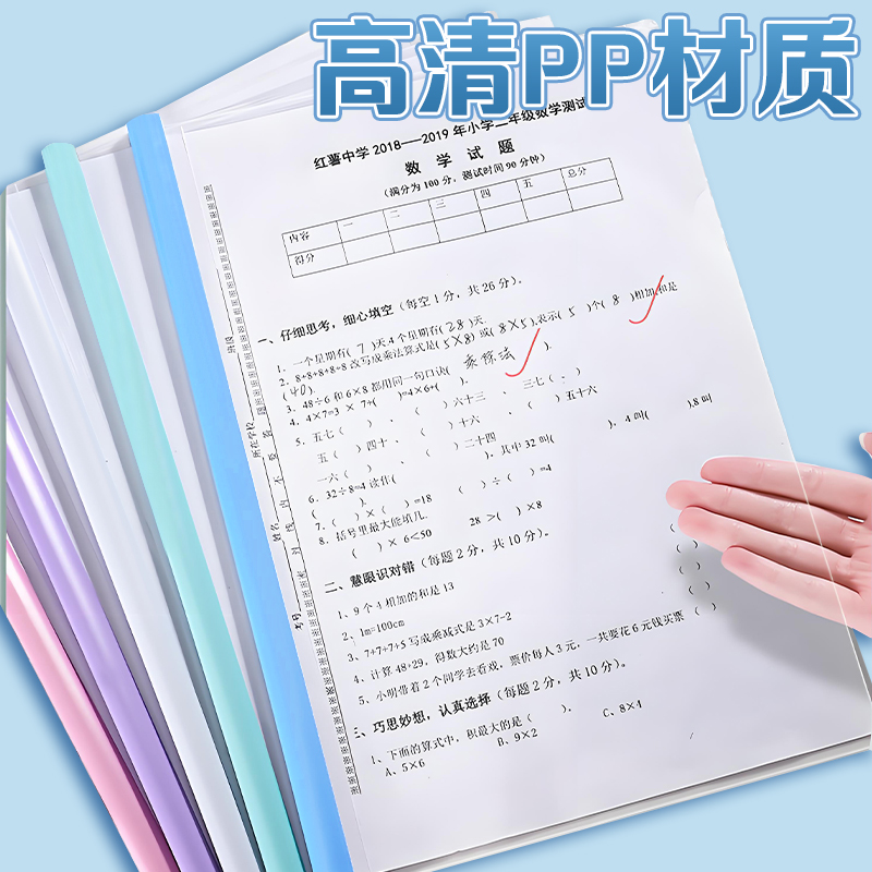 渐变透明抽杆夹a4水滴文件夹学生用活页书本夹试卷收纳夹整理神器档案夹办公用品大容量拉杆夹加厚整理资料夹