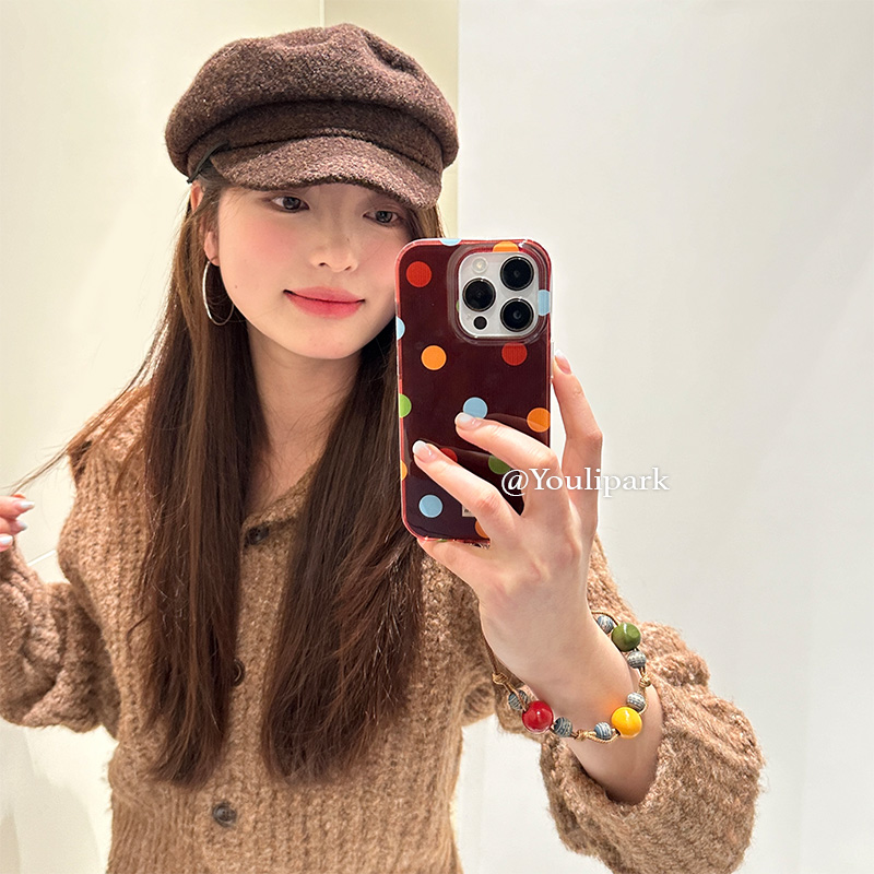 由里公园ins秋冬复古高级感彩色波点挂绳15适用16pro苹果16ProMax手机壳iPhone16全包12新款14Promax保护套13