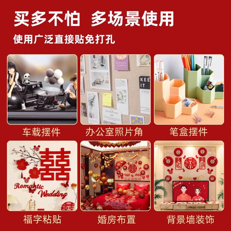 甜福迹结婚气球胶点喜字无痕胶多功能红胶带婚房圆形透明双面胶