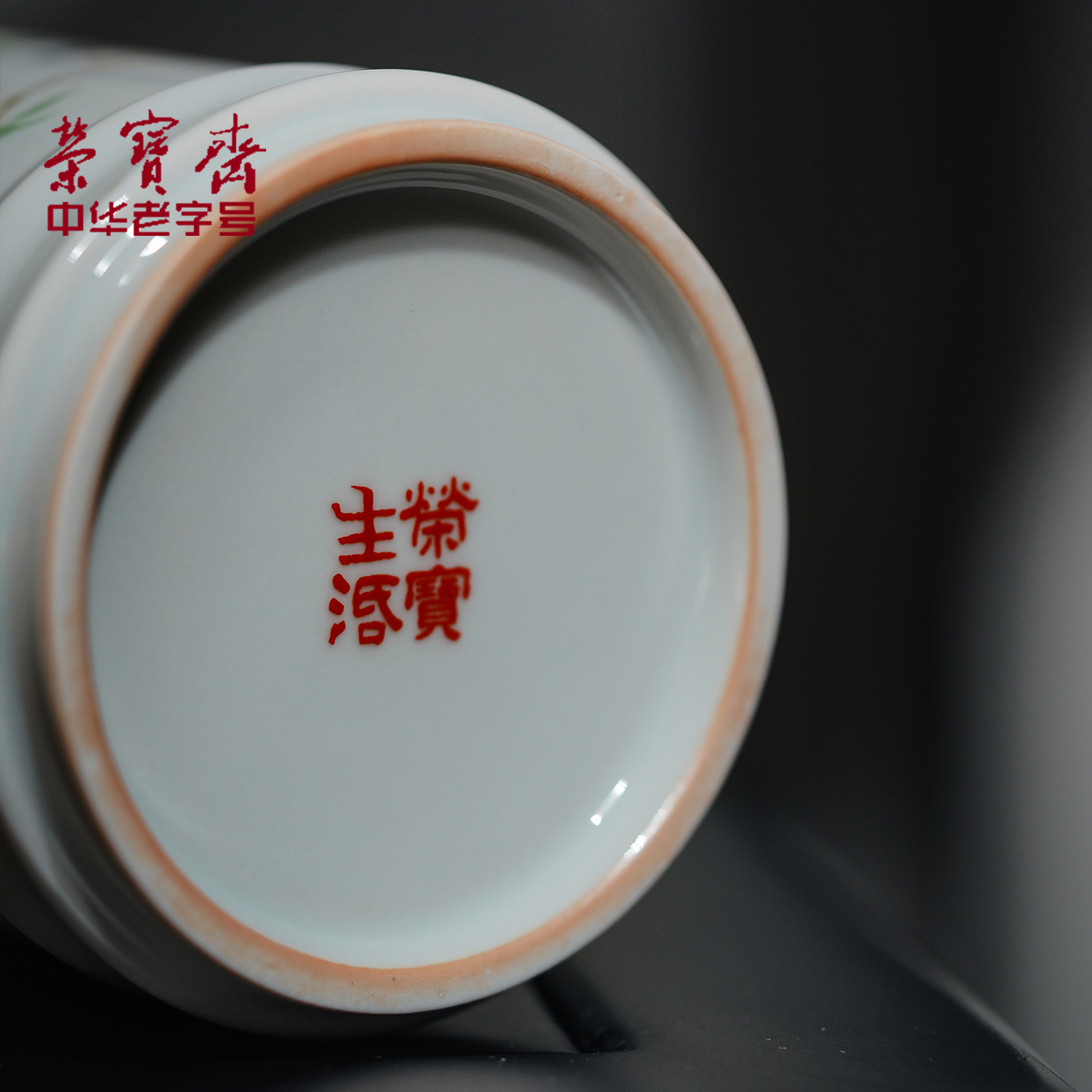 荣宝斋清供图笔筒圆形简约古风陶瓷学生桌面摆件初学者学生书法国画收纳装毛笔创意可爱文房四宝用品
