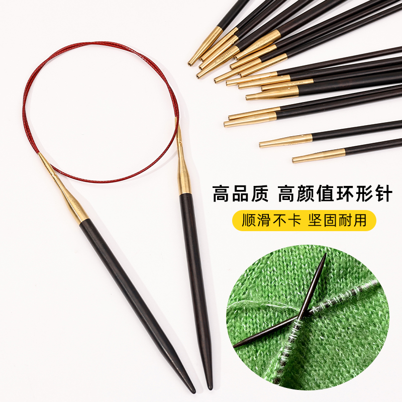黑檀环形针可拆卸针绳手工diy编织围巾工具毛衣针檀木循环针棒针