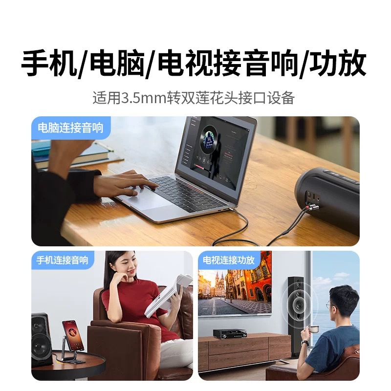 3.5mm转2rca双莲花音频线手机电脑音响公对公一分二rca音频转接线