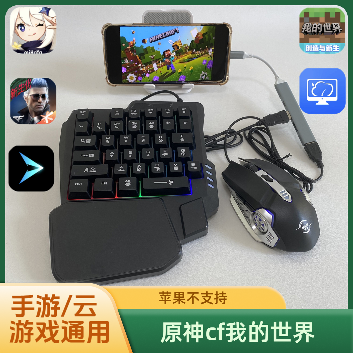 原神我的世界火影忍者手游外设键鼠套装安卓手机有线0延迟云电脑