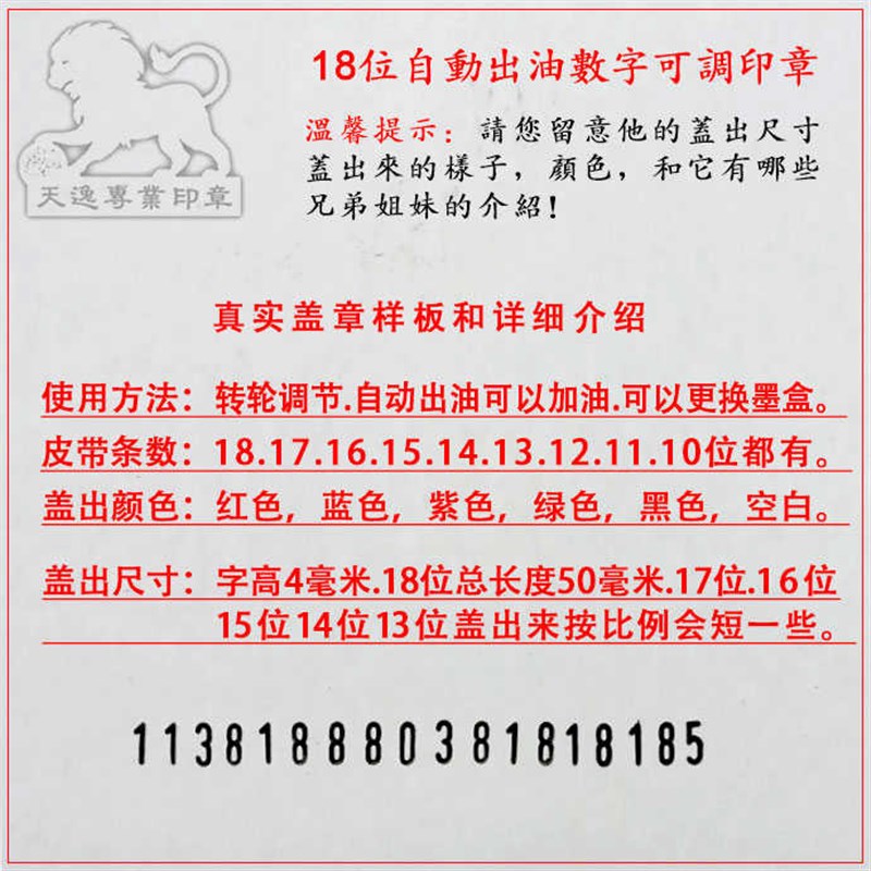 自动出油号码机打编号数n字印章批号序号可调18位17位16位15位14
