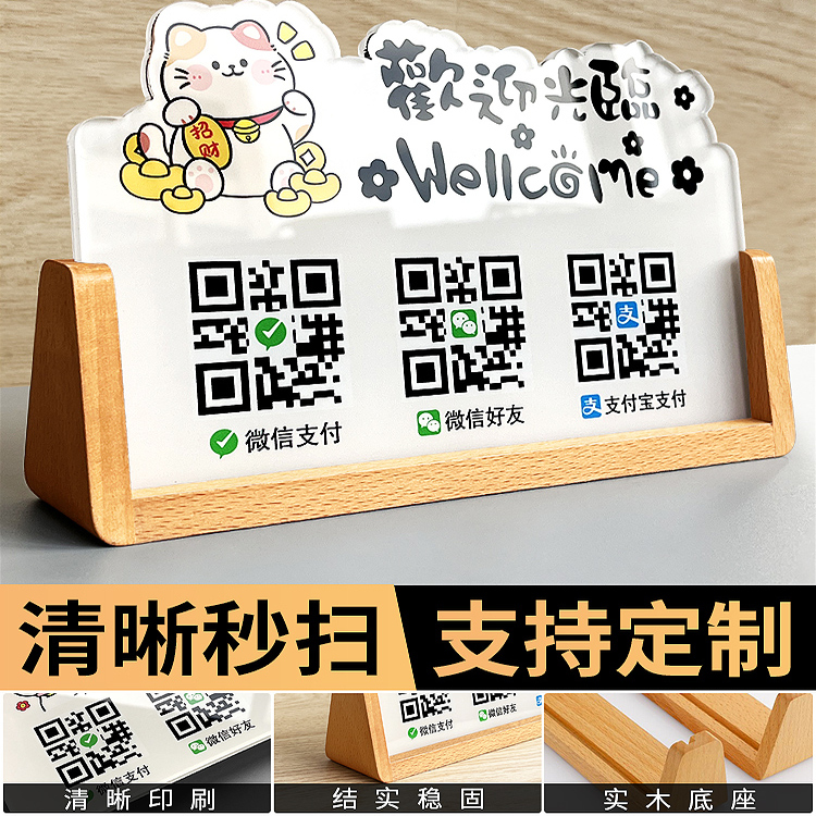收付款二维码高级展示牌定制亚克力收款码制作摆件摆台微信扫码加好友支付收钱立牌做店铺商家支付宝收银牌子