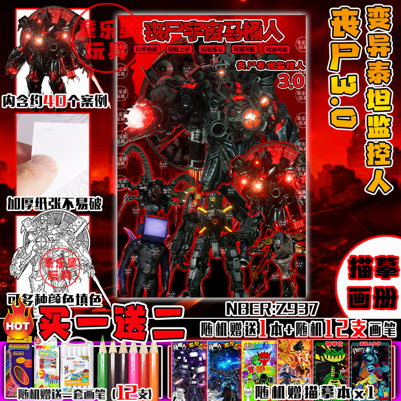 三体丧尸宇宙描摹本变异泰坦监控人幽灵马桶王儿童绘本线稿安静书