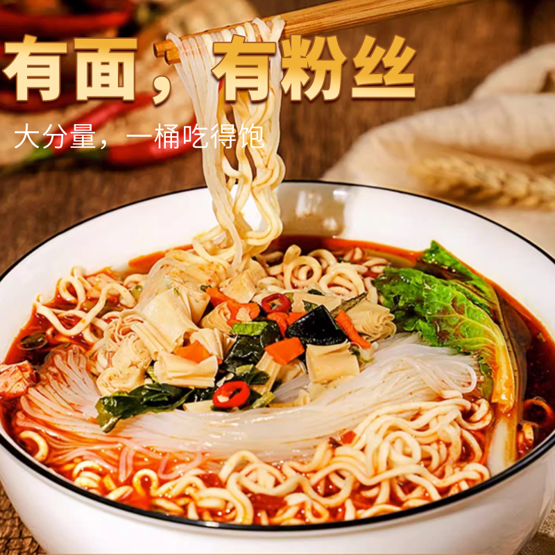 麻辣江湖杨掌柜金汤肥牛川香麻辣味粉加面桶装方便速食免煮冲泡