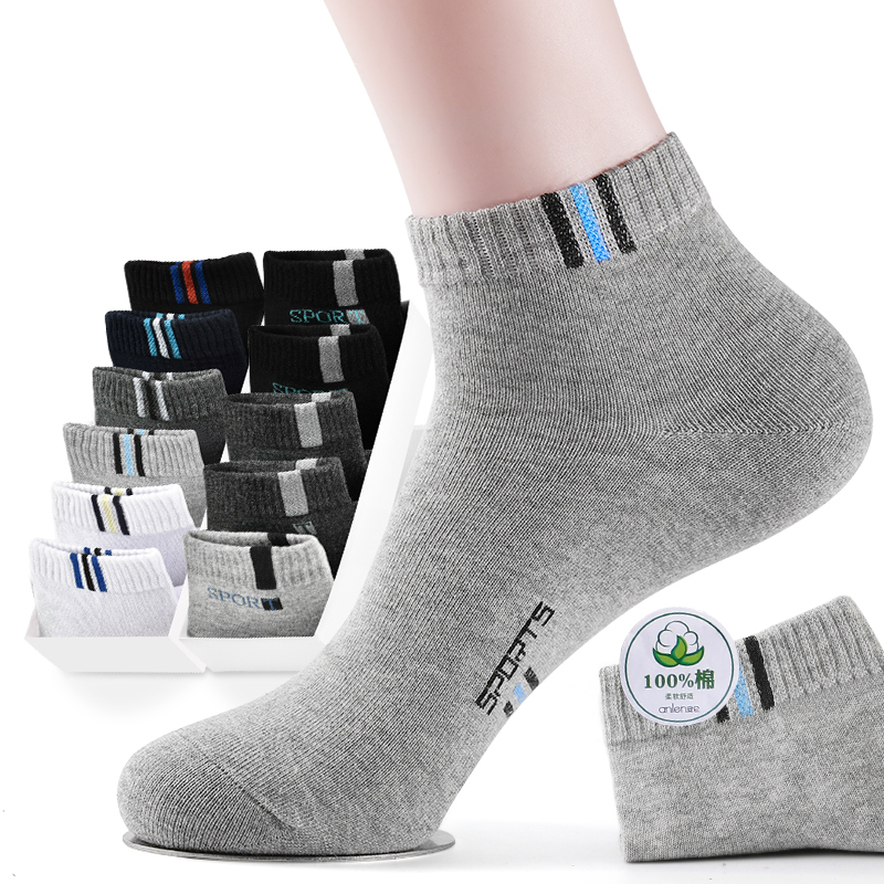袜子男短袜春秋季薄款纯棉无骨抗菌吸汗短筒全棉夏季黑色男士船袜