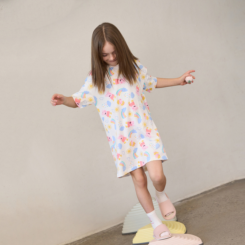 爱慕儿童小猪佩奇的彩虹雨季凉感夏睡衣女孩棉质可外穿短袖睡裙