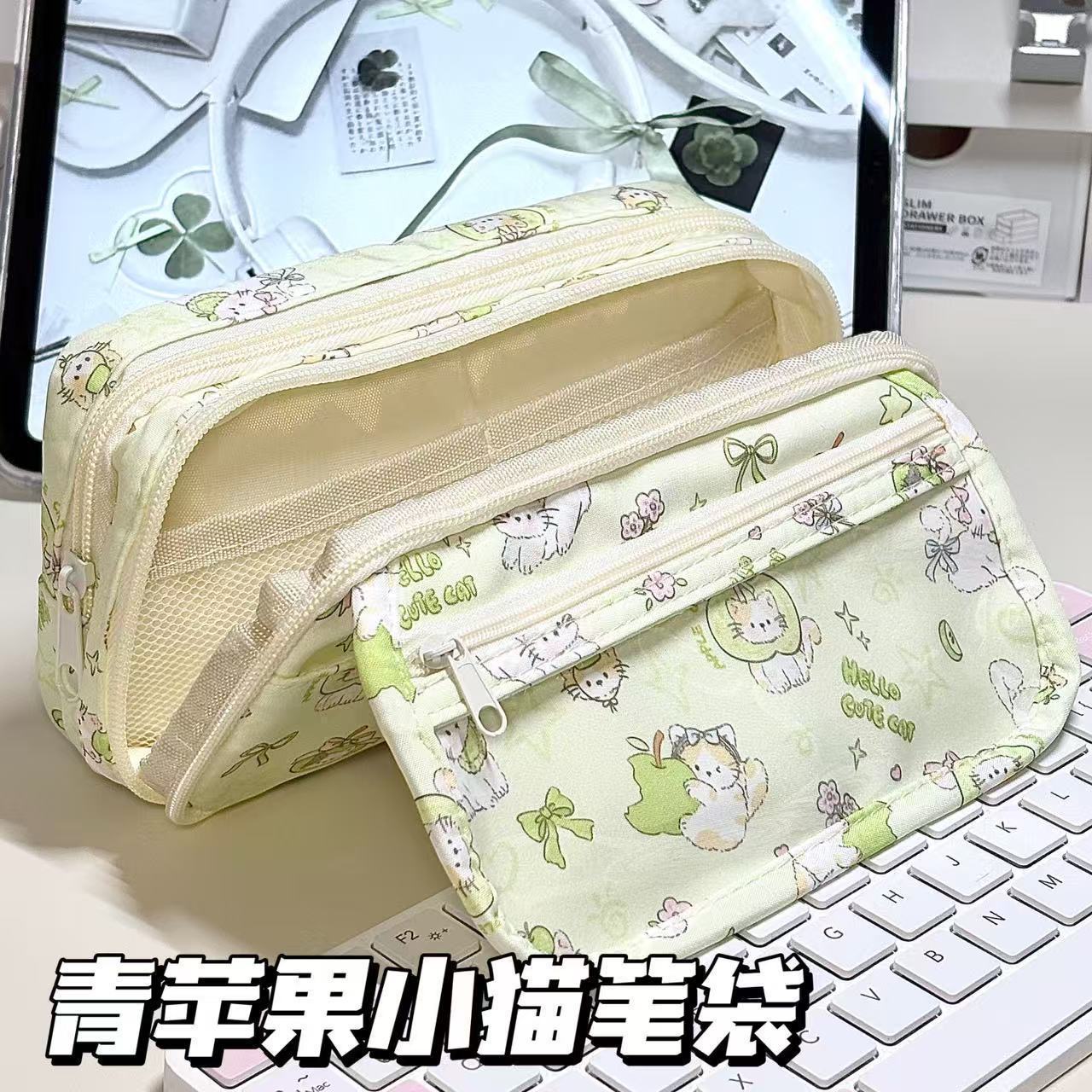 小清新苹果小猫翻盖笔袋高颜值ins风新款文具盒大容量简约痛包袋