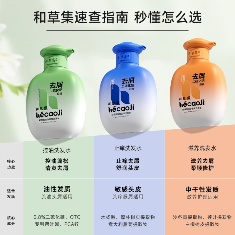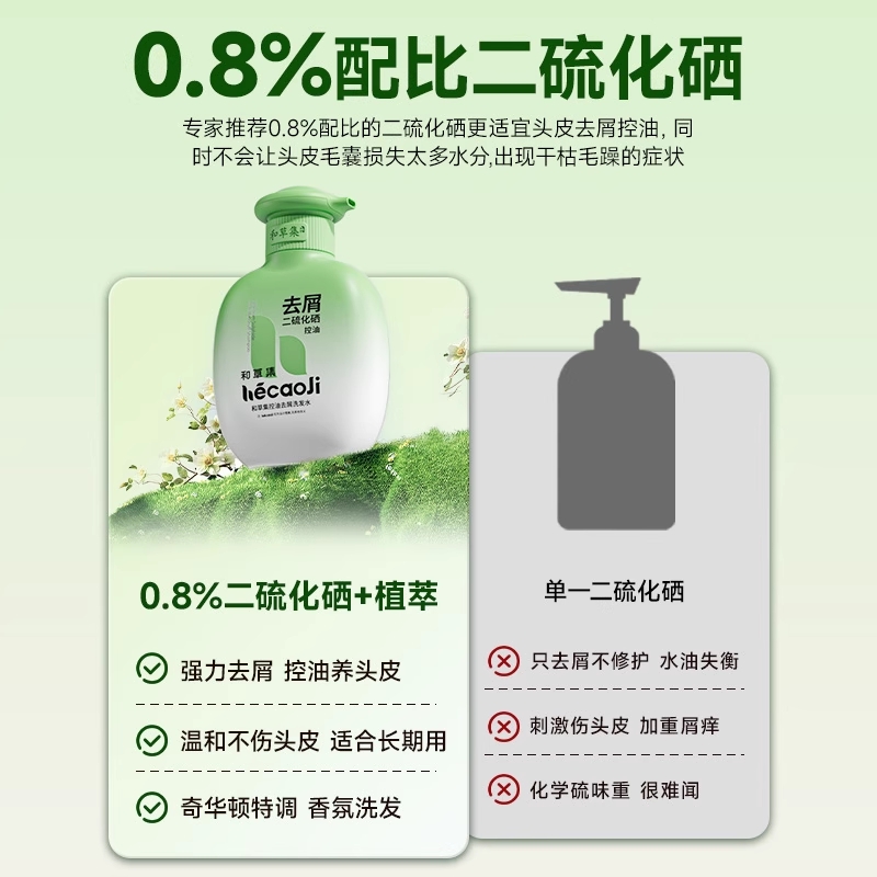 和草集止痒洗发水控油蓬松去屑二流化硒洗头膏官方品牌正品硫化硒