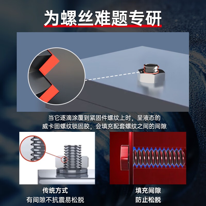 威卡固/VIKAGU 243耐高温高中低强度金属螺纹锁固剂242膨胀紧固防松专用密封厌氧胶222防生锈摩托车螺丝胶271